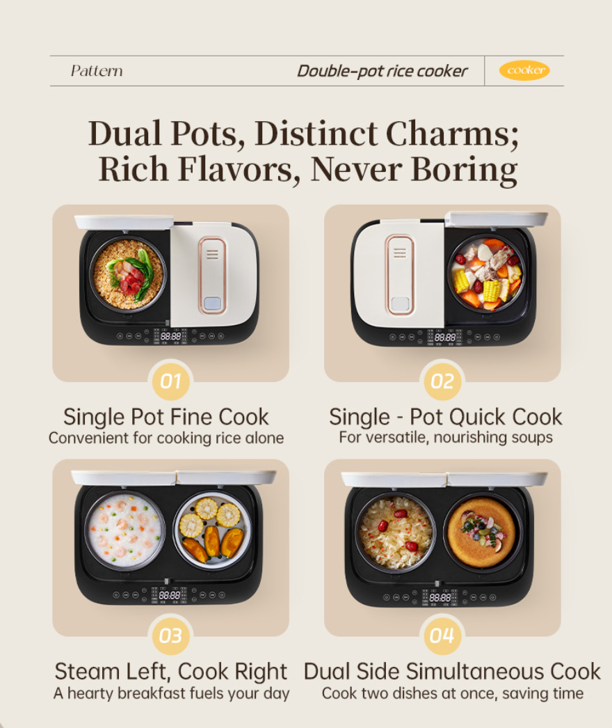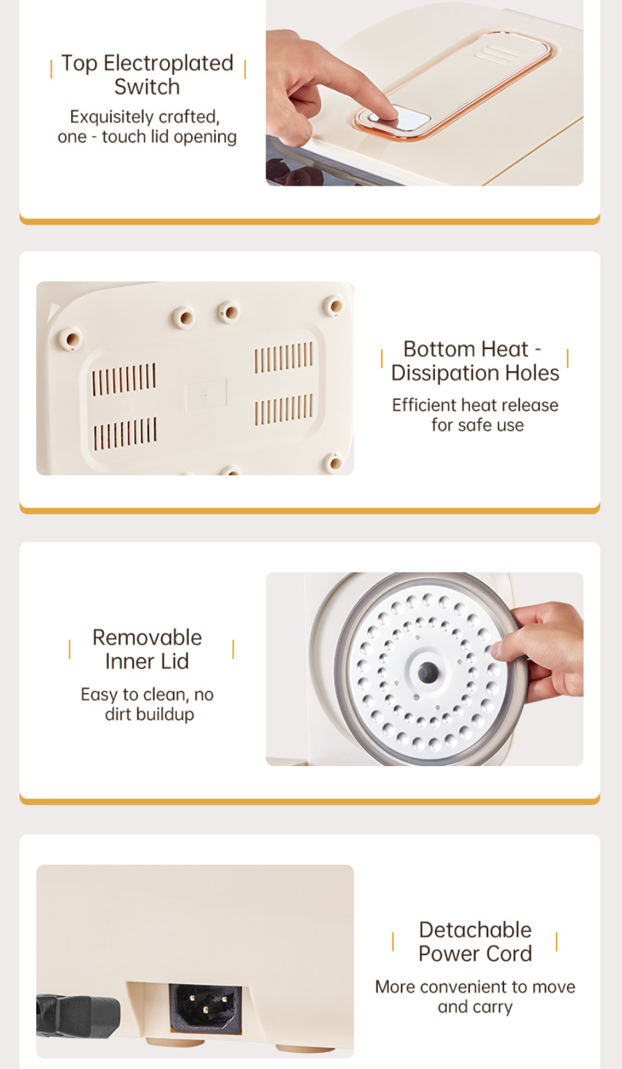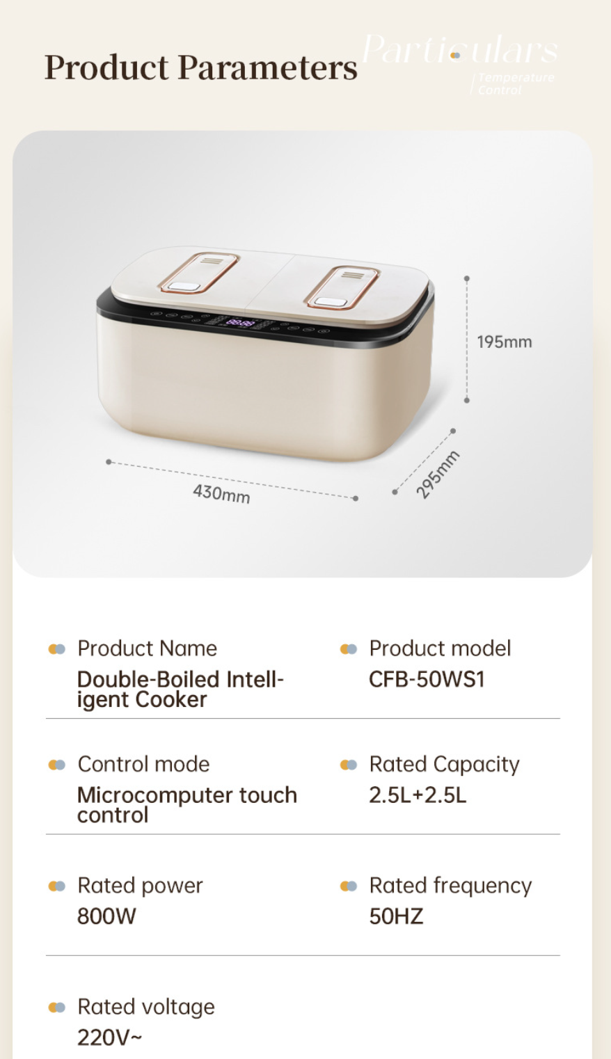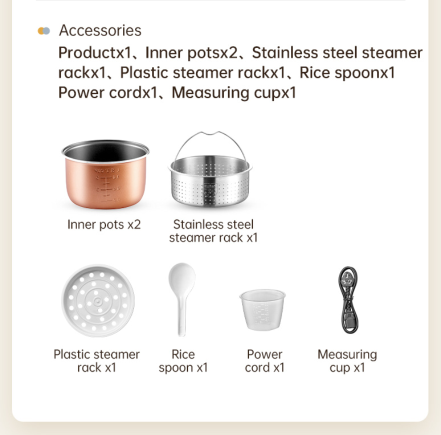 Included: 2 inner containers, 1 plastic steamer, 1 304 stainless steel de-sugaring steamer