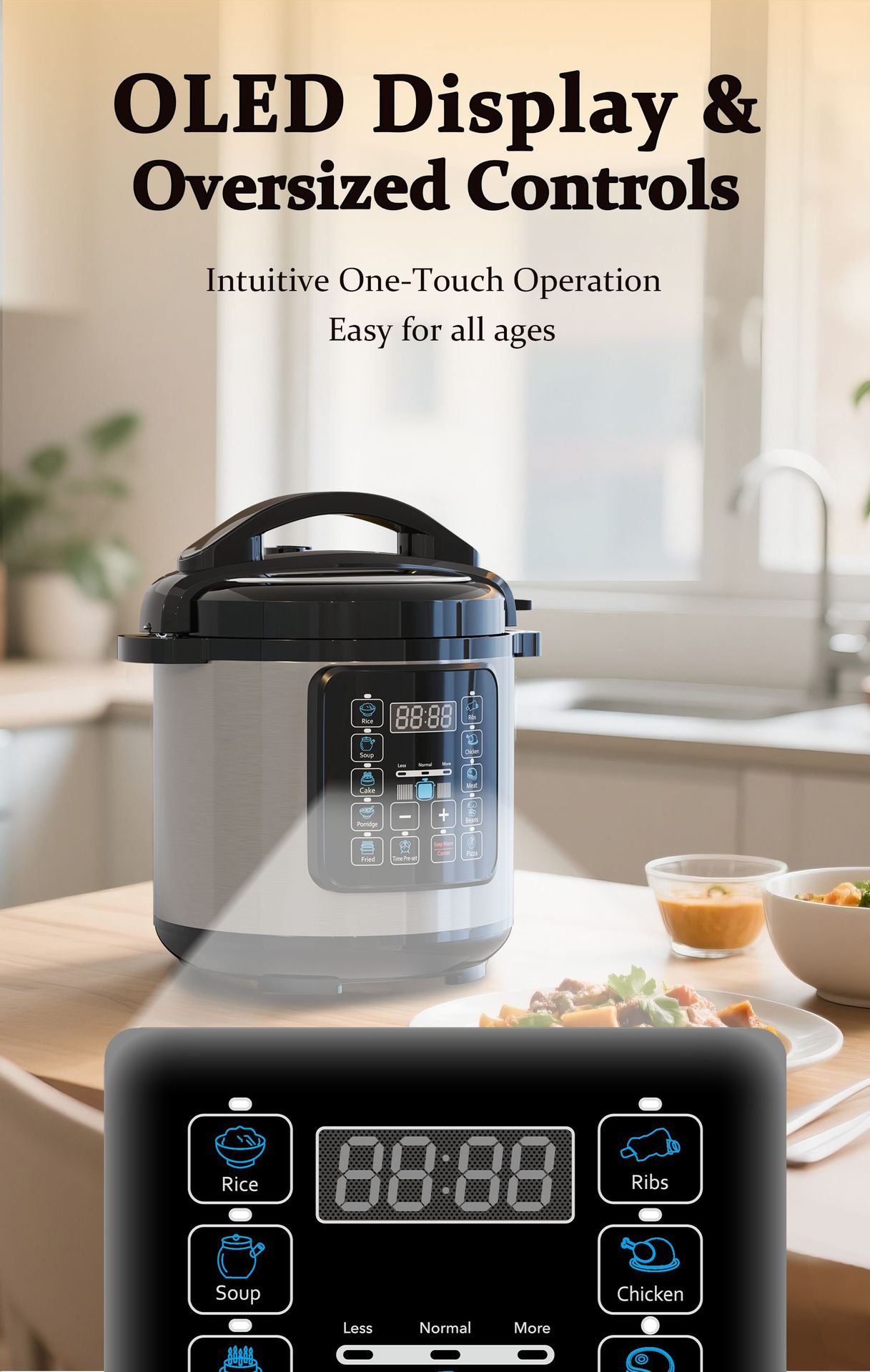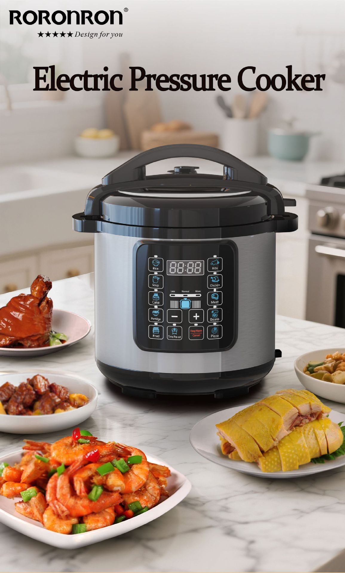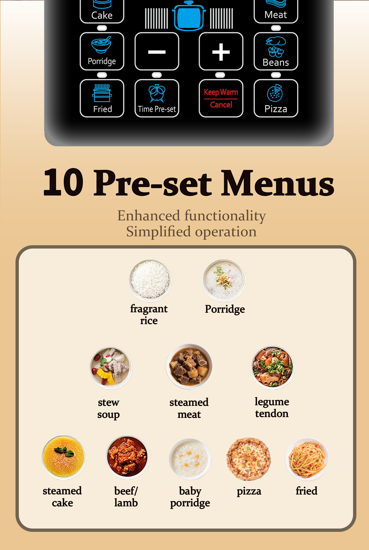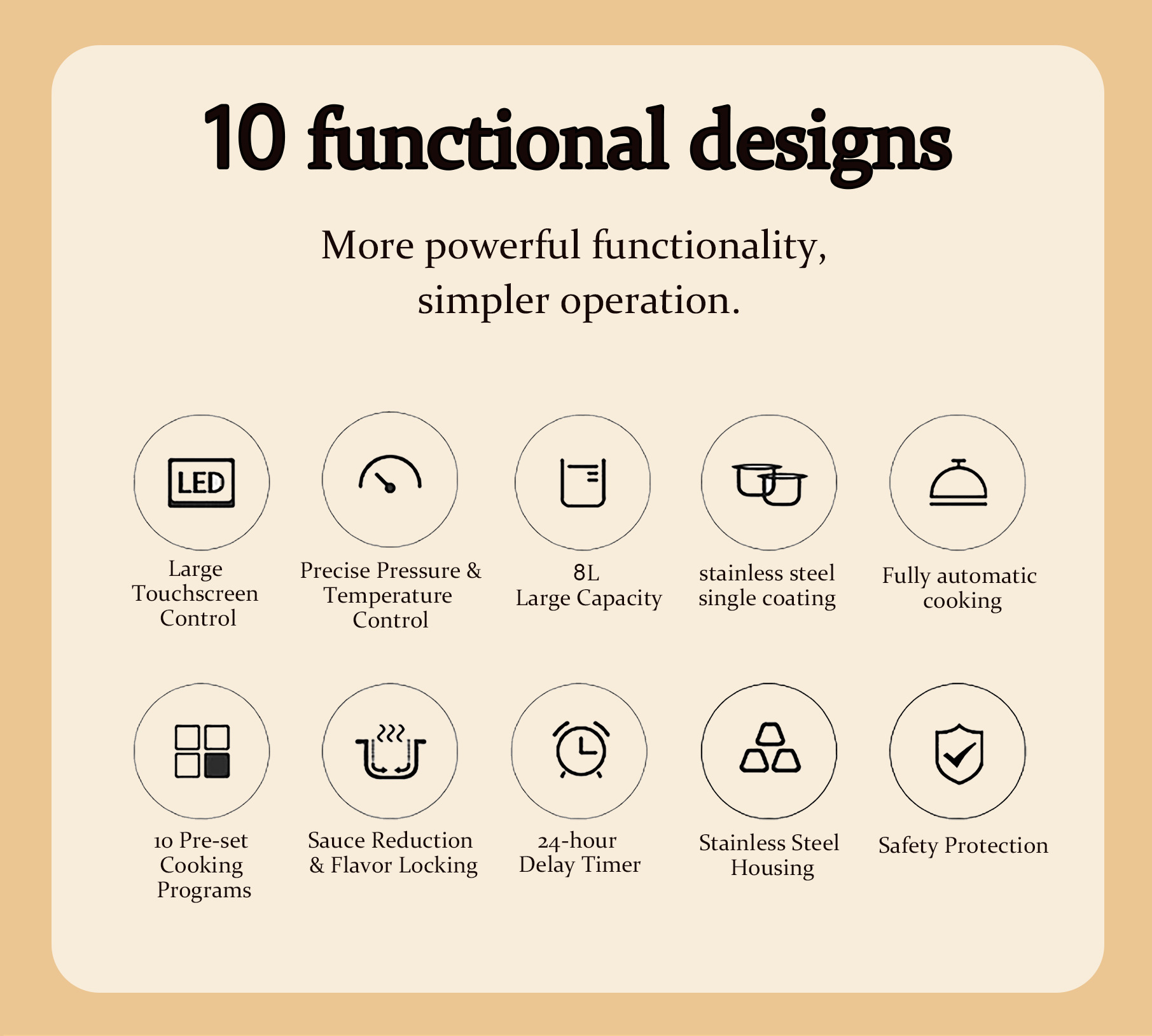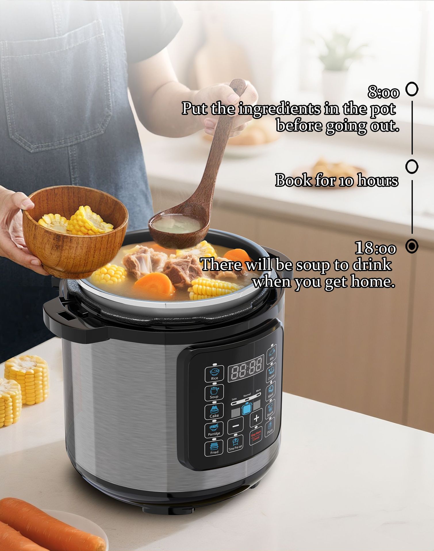 - 7 major functions: steaming, boiling, stewing, simmering, slow-cooking + timing + reservation