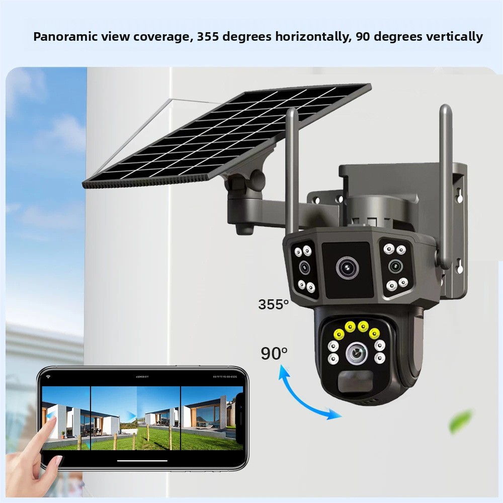Outdoor three-screen solar-powered camera monitor system